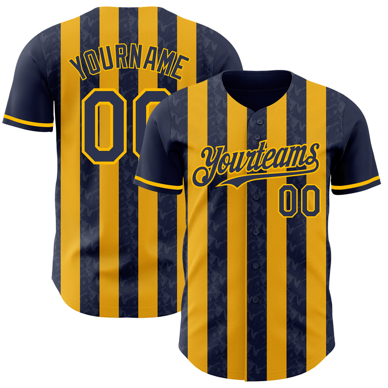 Custom Navy-Gold Classic Vertical Stripe Fluid Liquid Texture Authentic Baseball Jersey