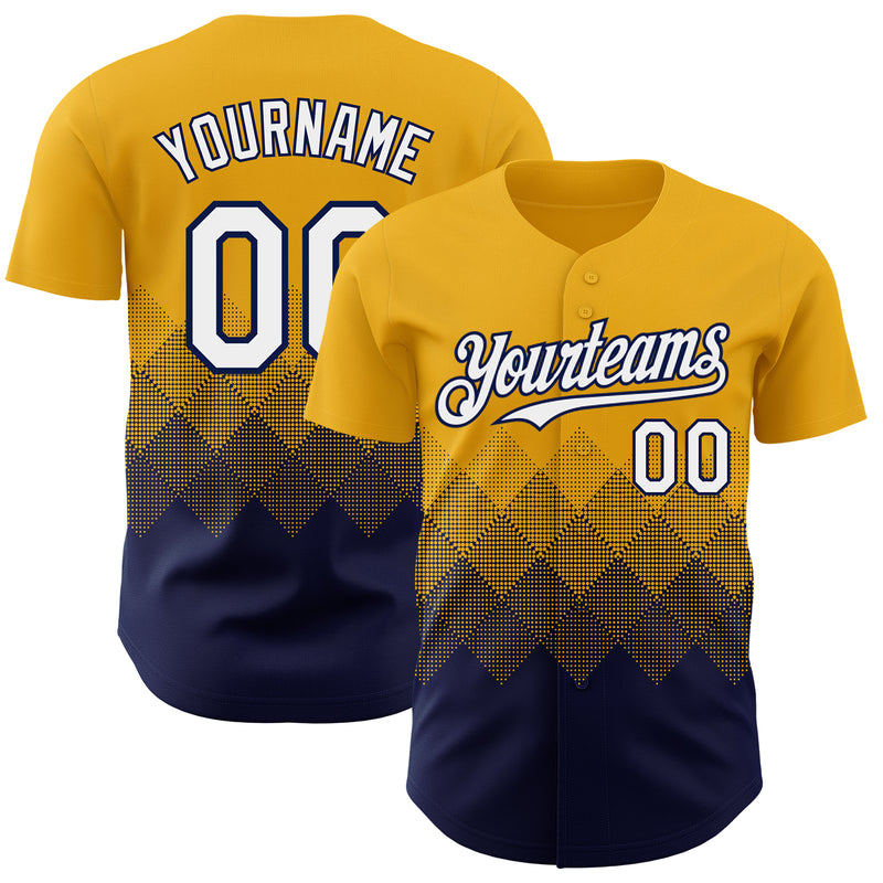 Custom Gold White-Navy 3D Gradient Square Shape Authentic Baseball Jersey
