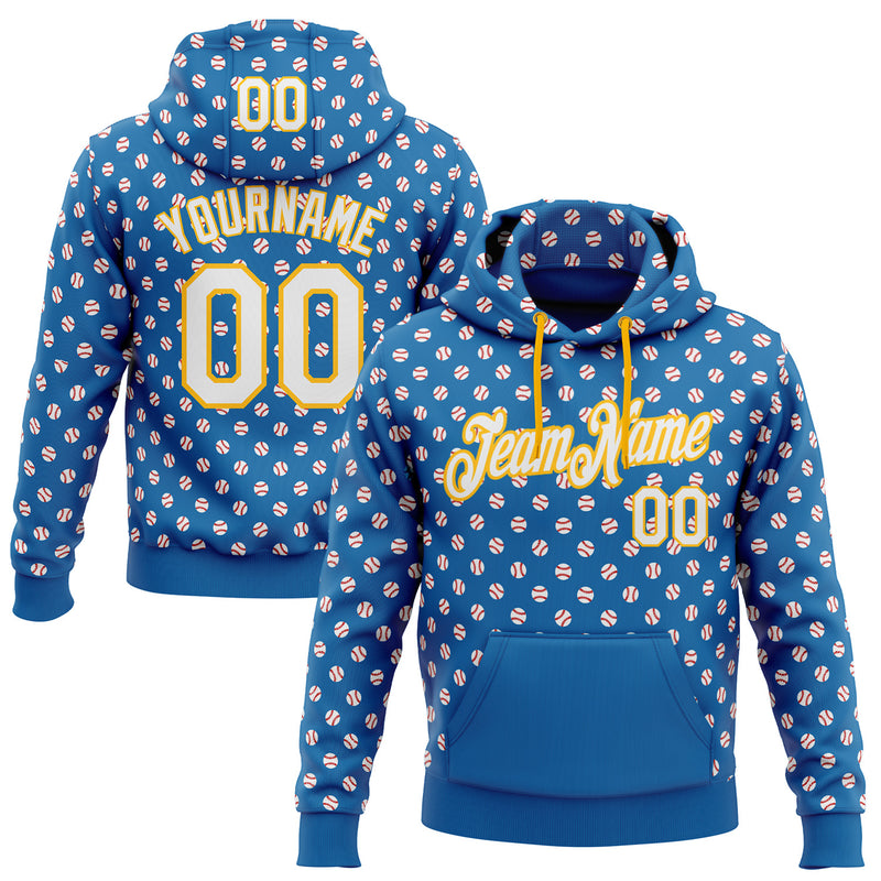 Custom Stitched Blue White-Gold 3D Pattern Design Baseball Game Day Los Angeles Inspired Sports Pullover Sweatshirt Hoodie
