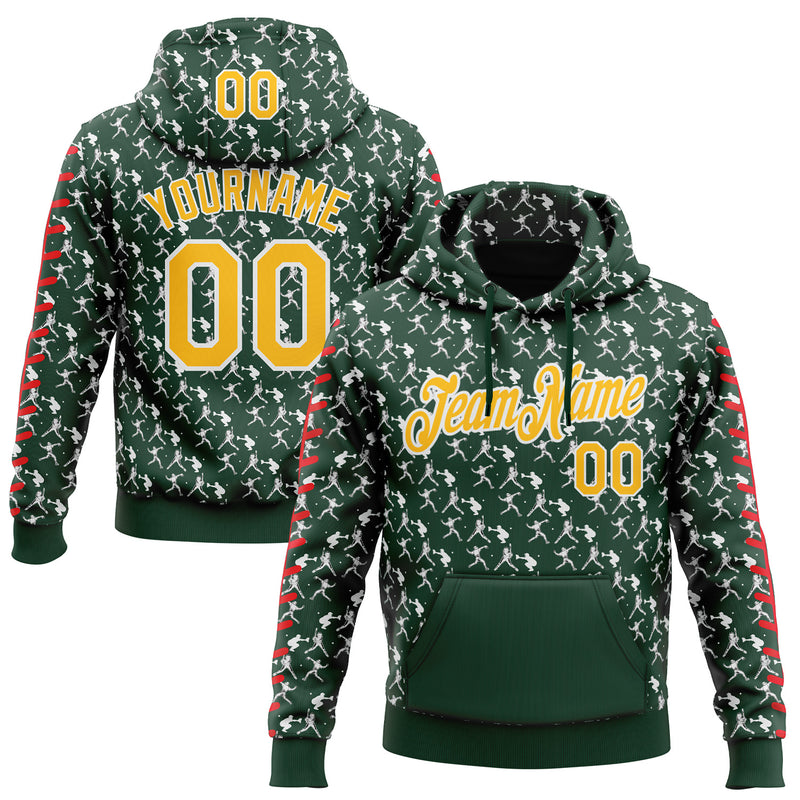 Custom Stitched Green Gold Red-White 3D Pattern Design Baseball Game Day Green Bay Inspired Sports Pullover Sweatshirt Hoodie