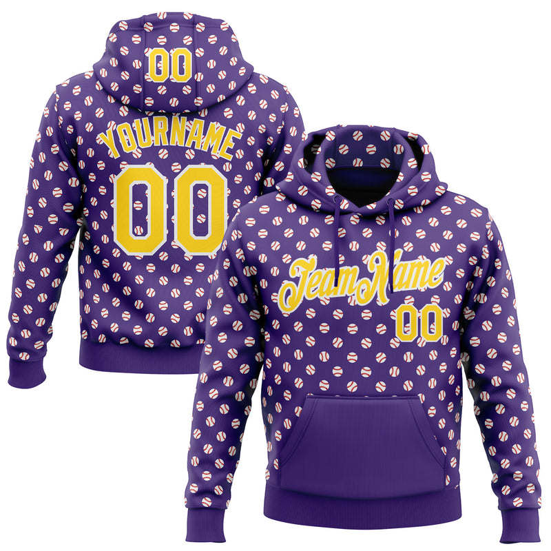 Custom Stitched Purple Yellow-White 3D Pattern Design Baseball Game Day Minnesota Inspired Sports Pullover Sweatshirt Hoodie