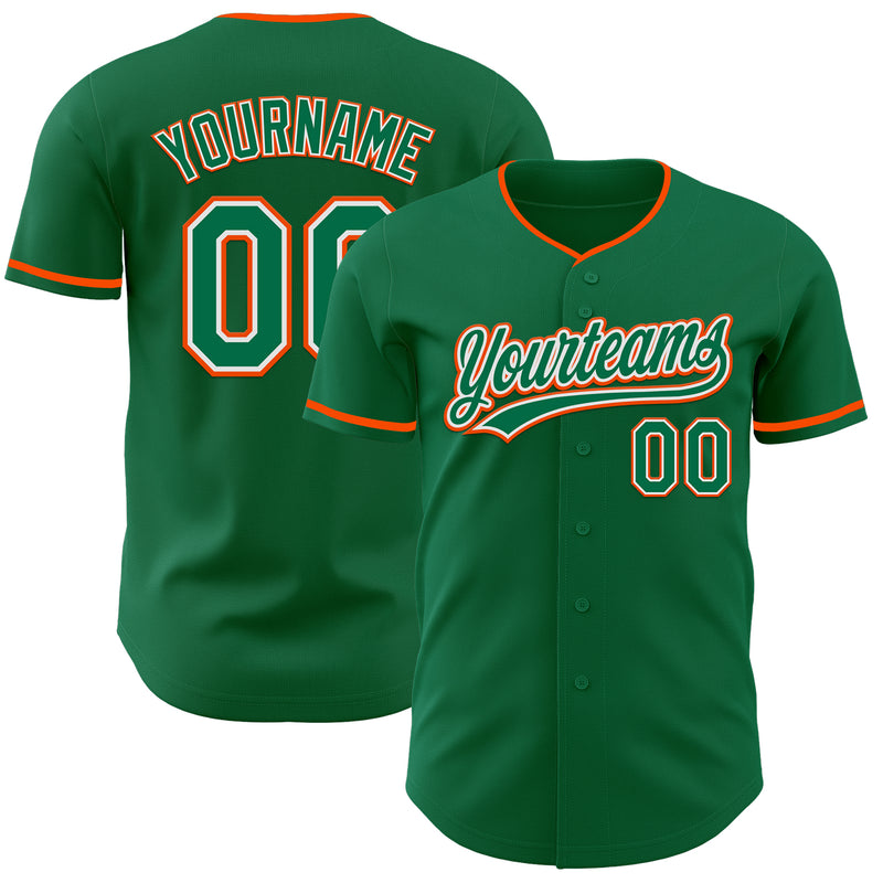 Custom Kelly Green White-Orange Authentic Baseball Jersey