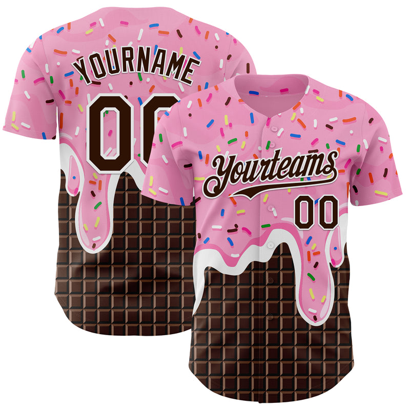 Custom Light Pink Brown-White Foodie Food Dessert Melting Cream Chocolate Grid Authentic Baseball Jersey