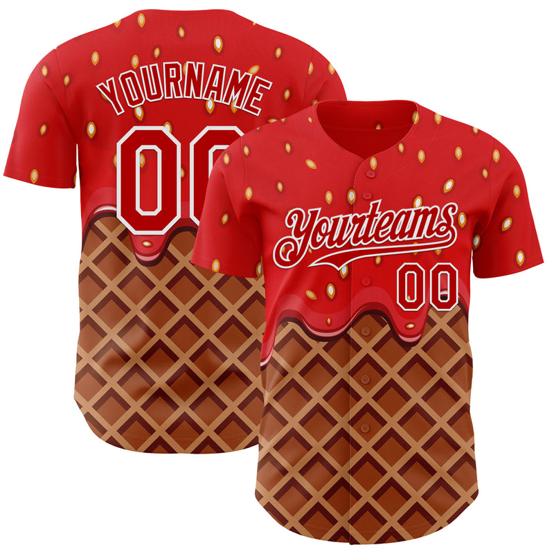 Custom Red Brown-White Foodie Food Dessert Melting Cream Waffle Grid Authentic Baseball Jersey