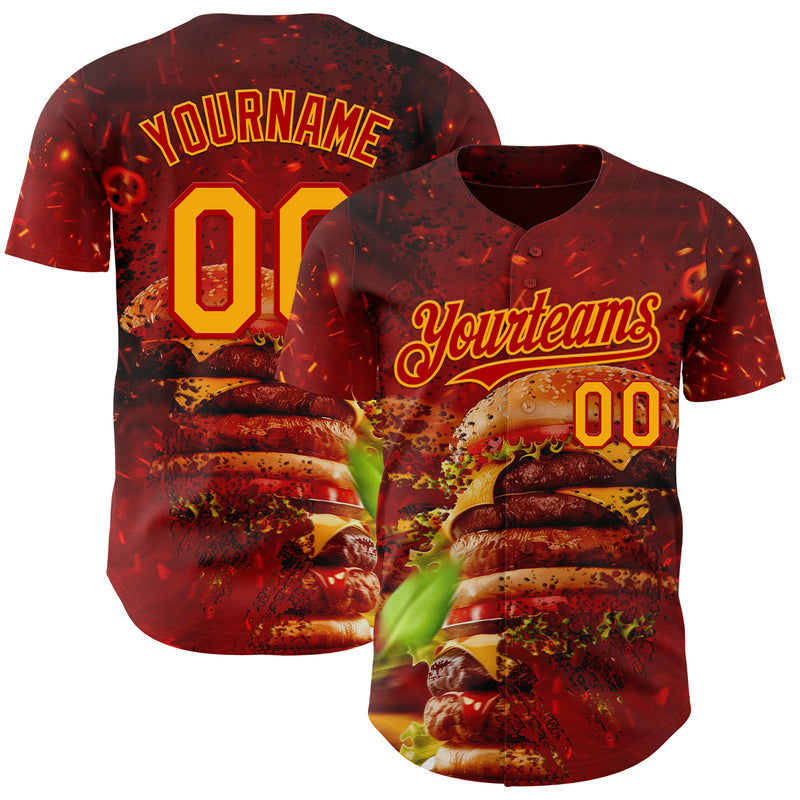 Custom Red-Yellow Foodie Fast Food Burger Authentic Baseball Jersey