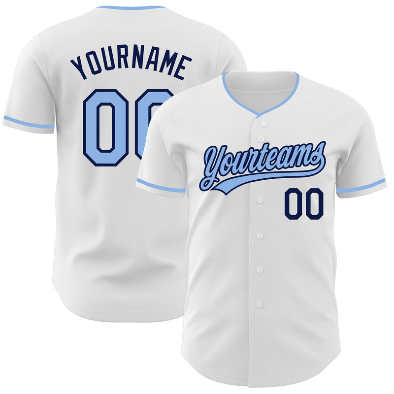 Custom White Light Blue-Navy Authentic Baseball Jersey