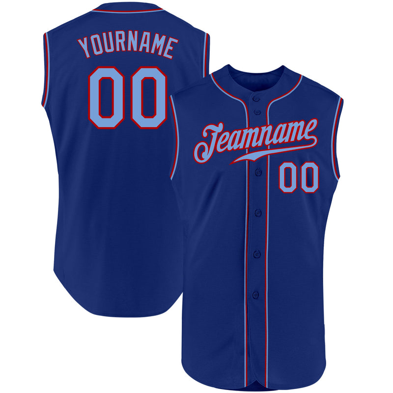 Custom Royal Light Blue-Red Authentic Sleeveless Baseball Jersey