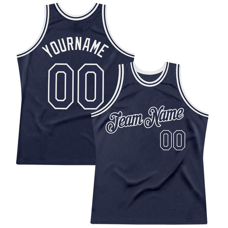 Custom Navy White Authentic Throwback Basketball Jersey