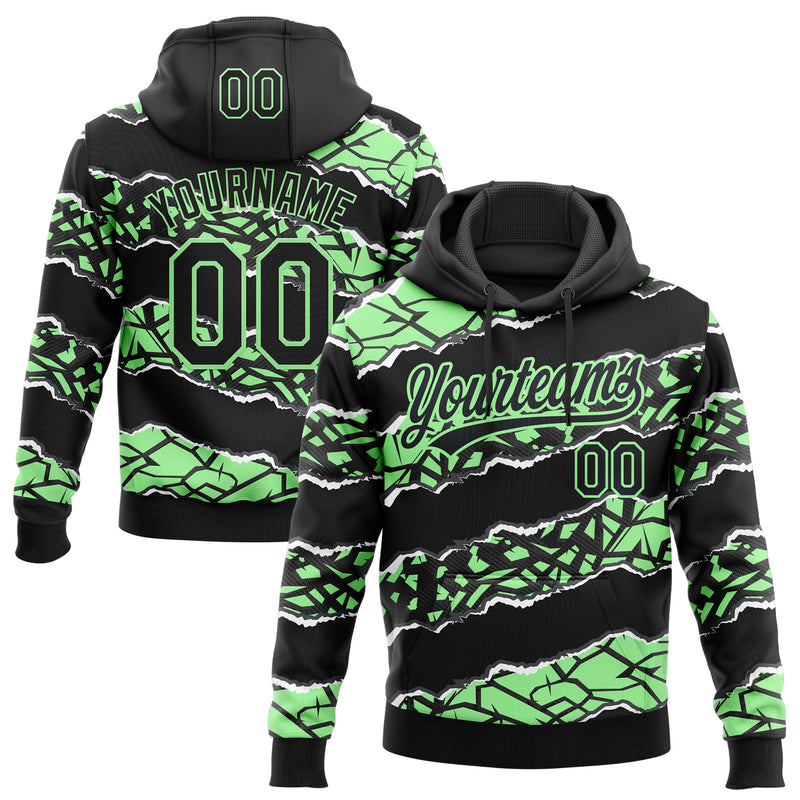 Custom Stitched Black Pea Green-White 3D Pattern Design Torn Paper Style Sports Pullover Sweatshirt Hoodie