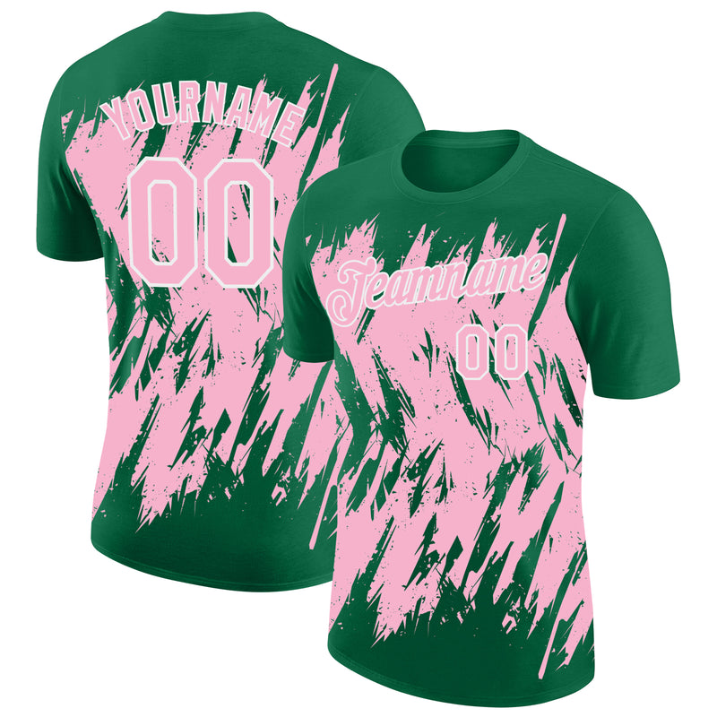 Custom Kelly Green Light Pink-White Torn Sharp Brush Stroke Splatter Performance T-Shirt