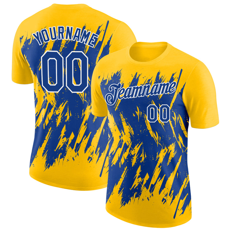Custom Yellow Royal-White Torn Sharp Brush Stroke Splatter Performance T-Shirt
