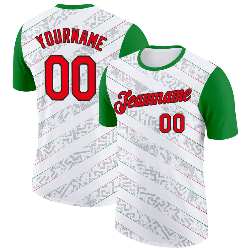 Custom White Fire Red Green-Black Portugal Abstract Pattern Performance T-Shirt