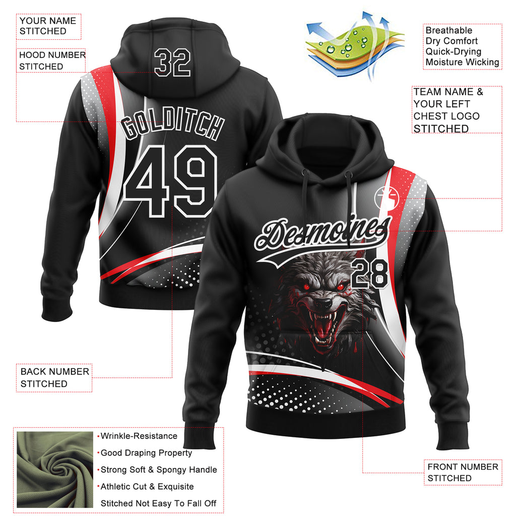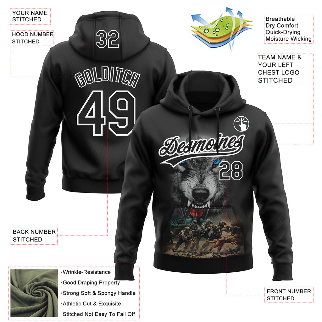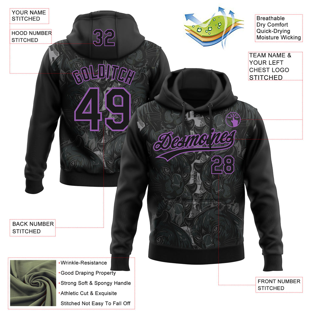 Custom Stitched Black Gray-White 3D Pattern Design Leopardo Sports Pullover Sweatshirt Hoodie