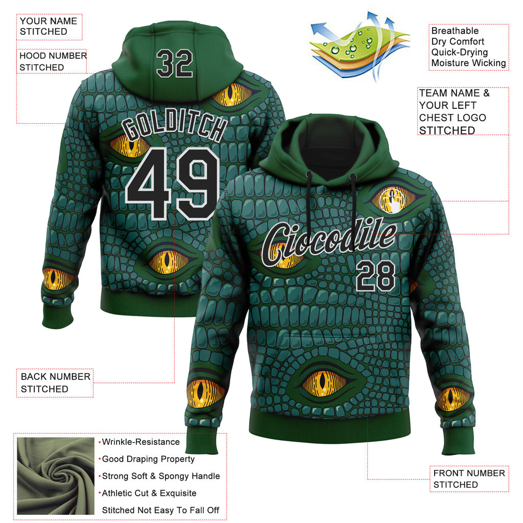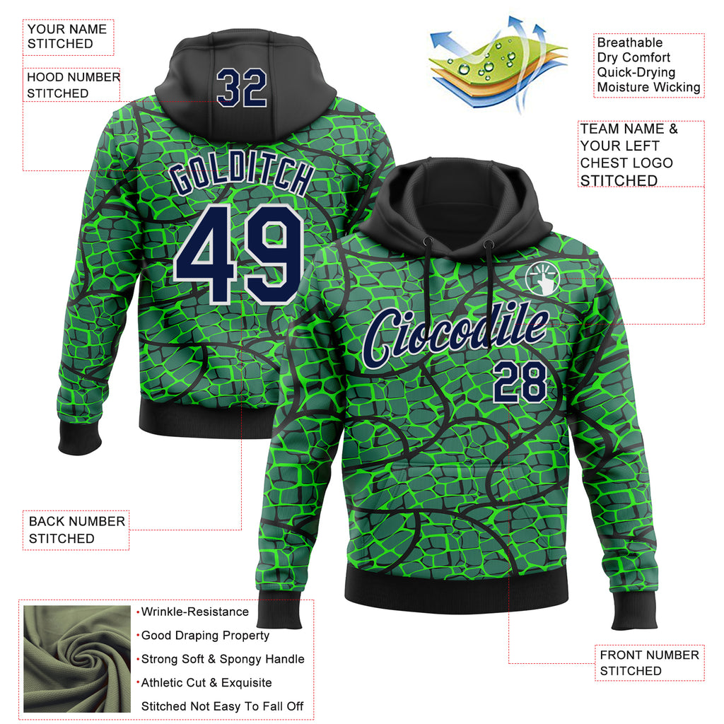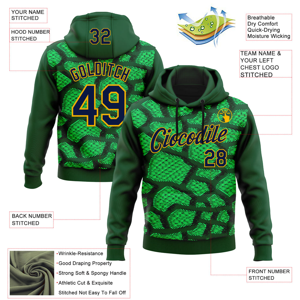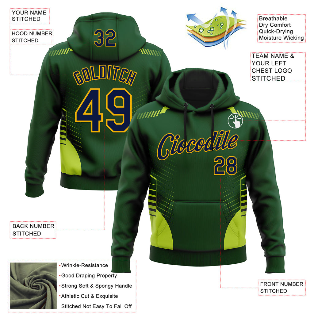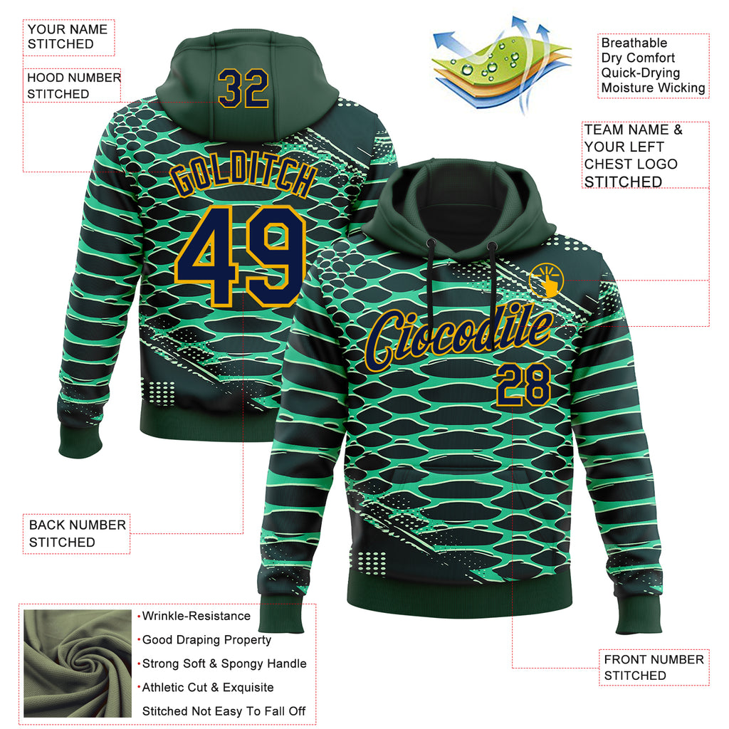Custom Stitched White Navy Green-Gold 3D Pattern Design Sportswear Pullover Sweatshirt Hoodie