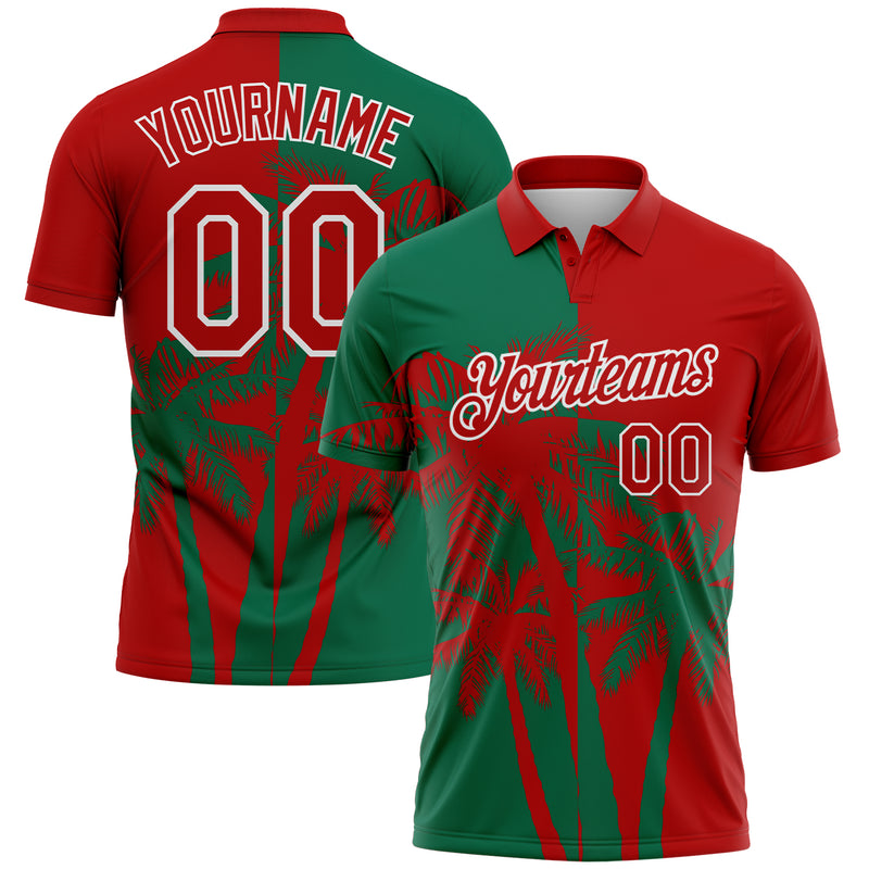Custom Red Kelly Green-White Hawaii Tropical Coastal Palm Trees Performance Polo Shirt