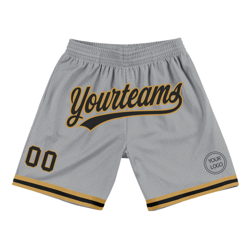 Shop Custom Authentic Gray Black Old Gold Basketball Shorts Stitched Jersey with size S M L 2XL 3XL 4XL 5XL 6XL 7XL and big & tall.