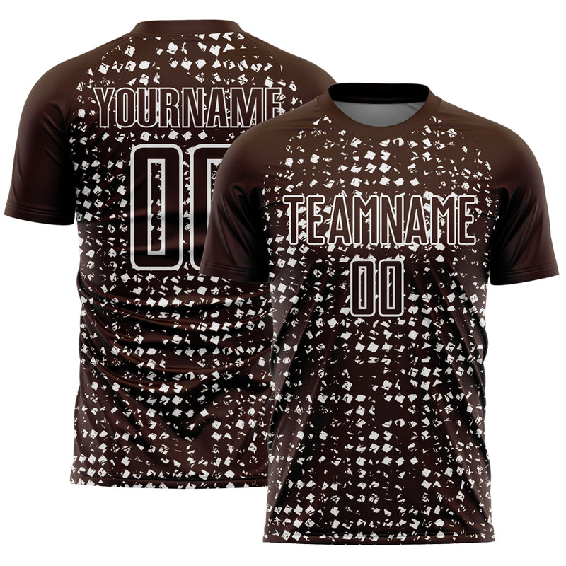 Custom Brown White Digital Geometric Fragment Speckles Sublimation Soccer Uniform Jersey
