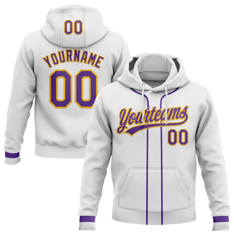 Custom Stitched White Purple-Gold Baseball Pullover Sweatshirt Hoodie